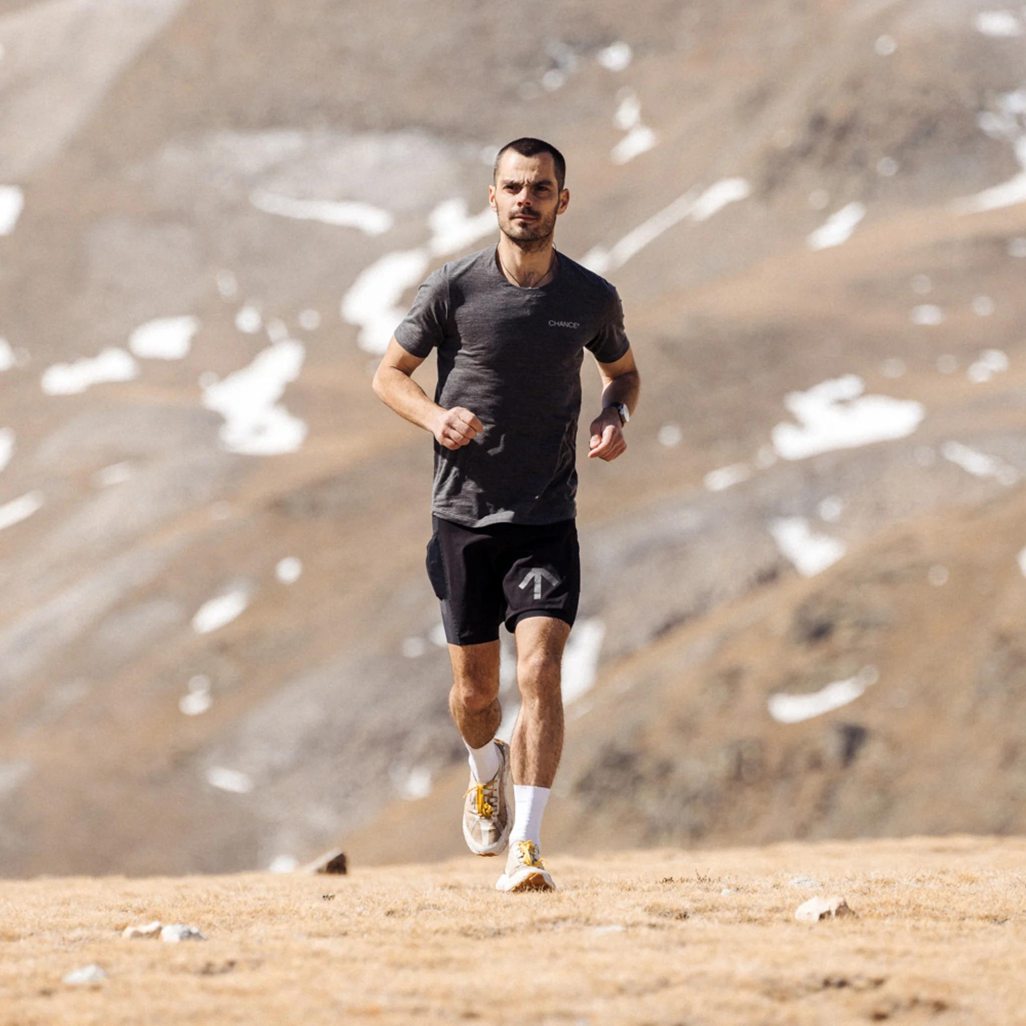 La gamme Run the Land est une célébration de certains des matériaux les plus incroyables du monde naturel, combinés aux caractéristiques de performance des fibres synthétiques recyclées.