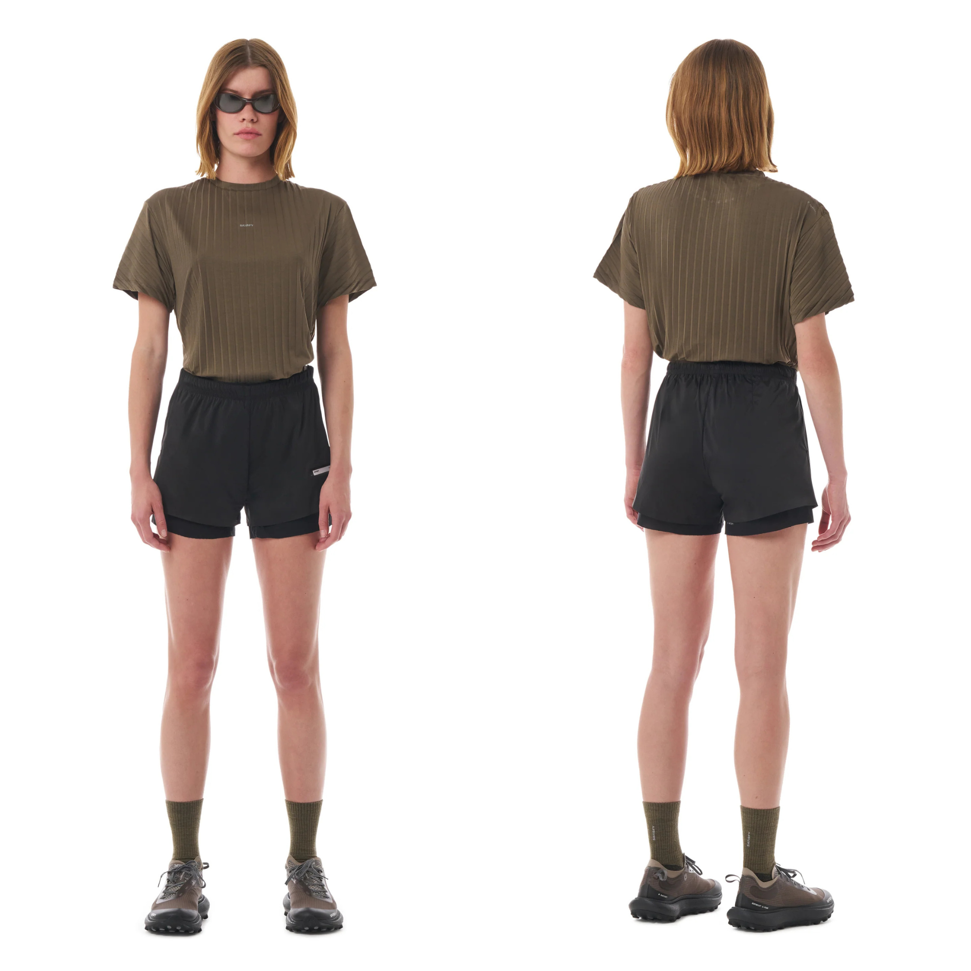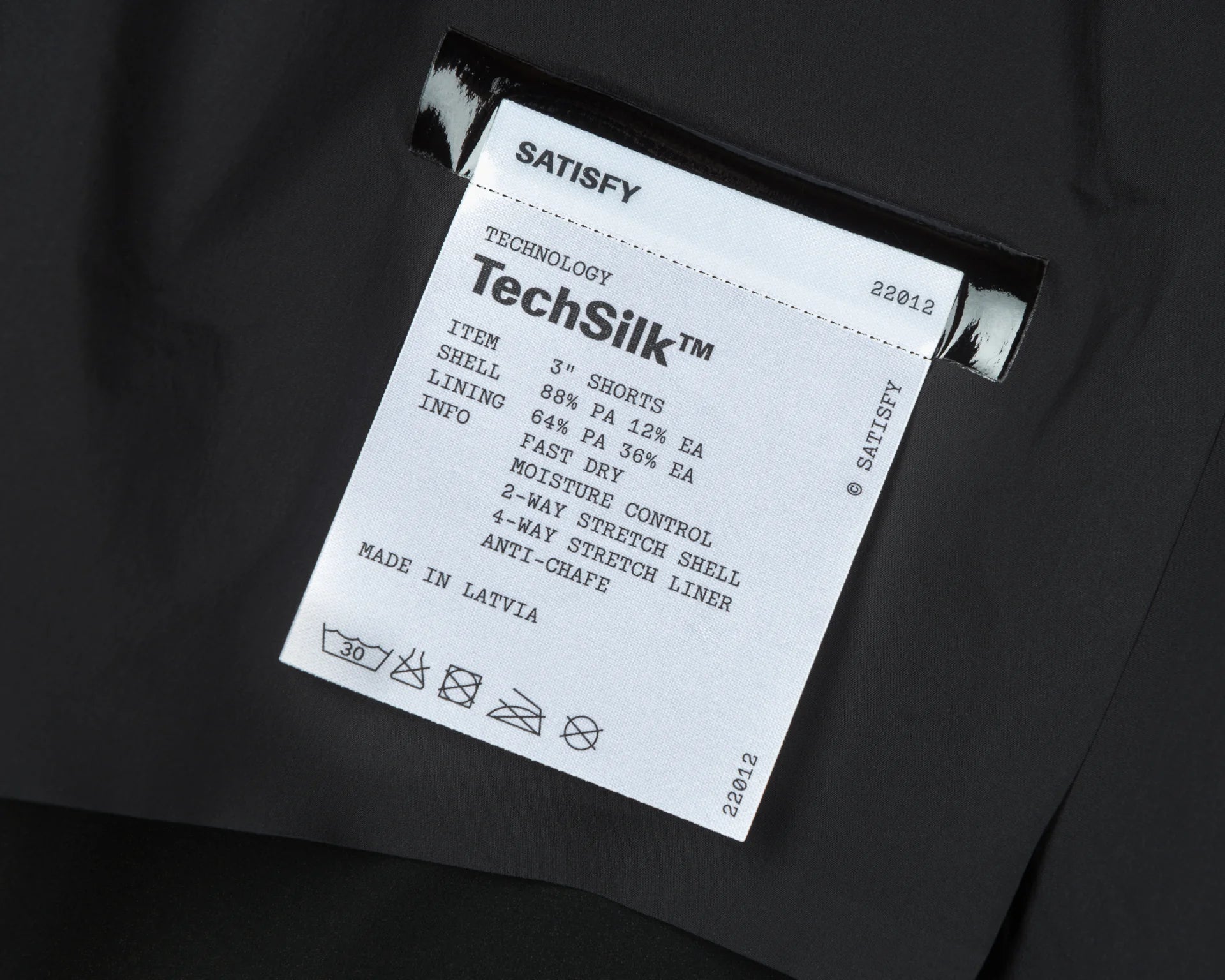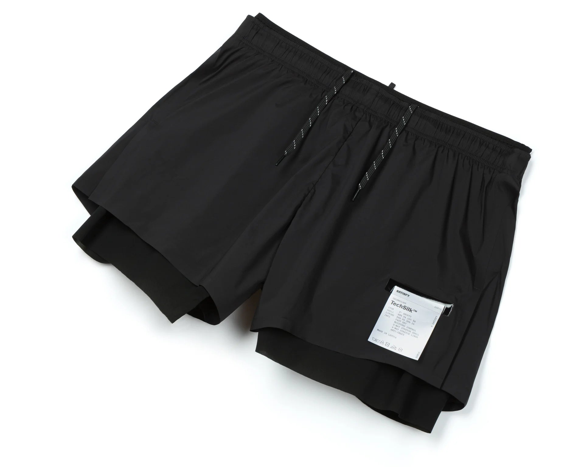 Exclusive Justice™ technology was developed in-house by Satisfy. This unique synthetic fabric is produced in France by a natural silk manufacturer founded in 1839, which pivoted in the 1960s to manufacturing technical and elastic yarns. Borrowing from medical technology, Justice™ is highly durable and resilient, yet has the feel of silk and an incomparable lightness. It stretches naturally in all directions, following the body's movements while remaining breathable. Justice™ dries surprisingly quickly, preventing bacteria from mixing with your sweat, and remains odor-free.